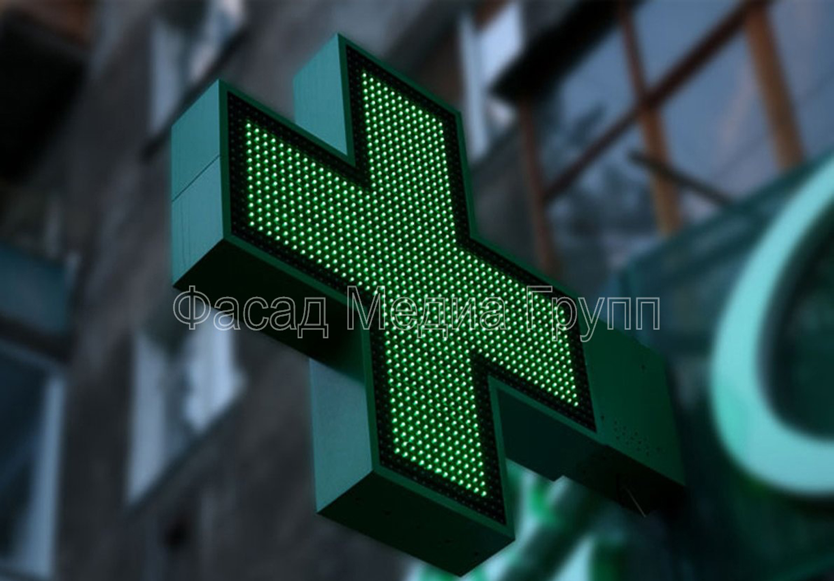 Рекламно-производственная компания "Фасад Медиа Групп" занимается изготовлением аптечные кресты «под ключ»: